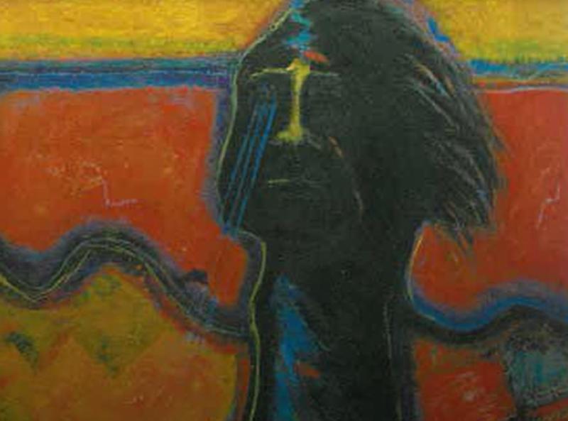 A set of 11 water-based acrylic paintings serves as a visual interpretation of the Sand Creek Massacre—her reaction to a 1981 book of provocative poetry, titled “from Sand Creek,” by Acoma Pueblo writer Simon J. Ortiz.